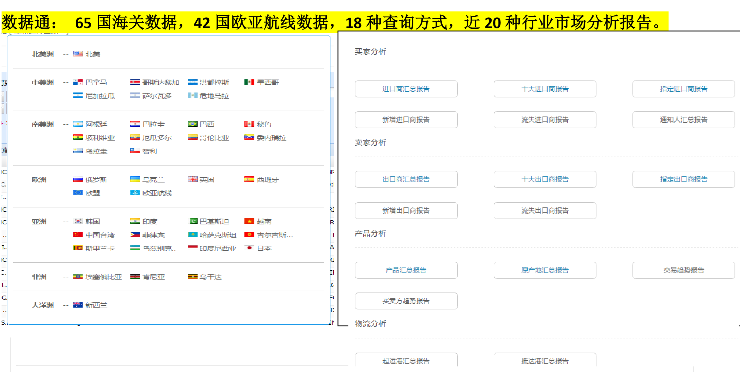 BG大游集团海关数据库,实时给予全球涵盖65国海关数据,42国欧亚航线数据,100+亿实时贸易数据,定位1.8亿全球企业信息,帮助您分析全球市场贸易趋势及分布,为您的产品快速、精准、科学地锁定热销国家和新兴市场。